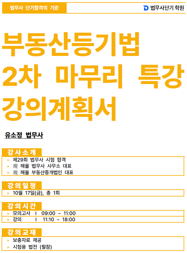 10/17(금) 오전, 오후 - 부동산등기법(유소정T) 마무리 특강