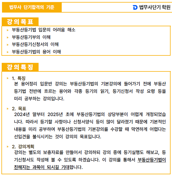 2026년 법무사 1차 부동산등기법 입문 용어 정리 특강 오영관_강의계획서 (11/10 개강) ★★날짜 변경★★